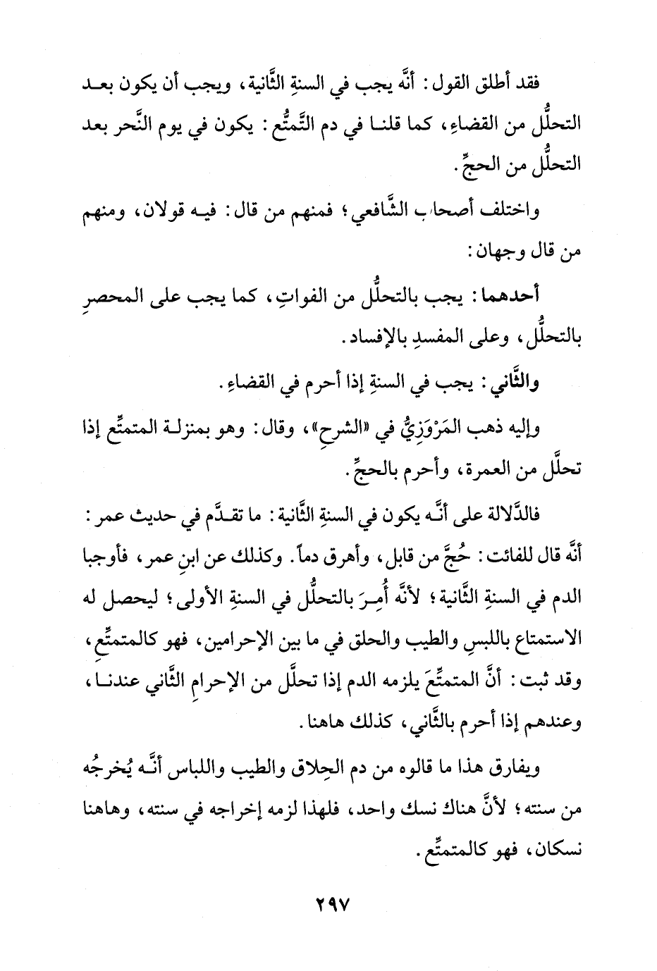 فالدلالة على أنه يكون في السنة الثانية: ما تقدم في حديث عمر: أنه قال للفائت: حُجَّ من قابل، وأهرق دماً. وكذلك عن ابن عمر، فأوجبا الدم في السنة الثانية؛ لأنه أمر بالتحلل في السنة الأولى؛ ليحصل له الاستمتاع باللبس والطيب والحلق في ما بين الإحرامين، فهو كالمتمتع، وقد ثبت: أن المتمتع يلزمه الدم إذا تحلل من الإحرام الثاني عندنا، وعندهم إذا أحرم بالثاني، كذلك هاهنا.