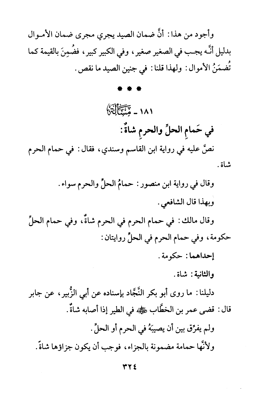 نص عليه في رواية ابن القاسم وسندي، فقال: في حمام الحرم شاة.