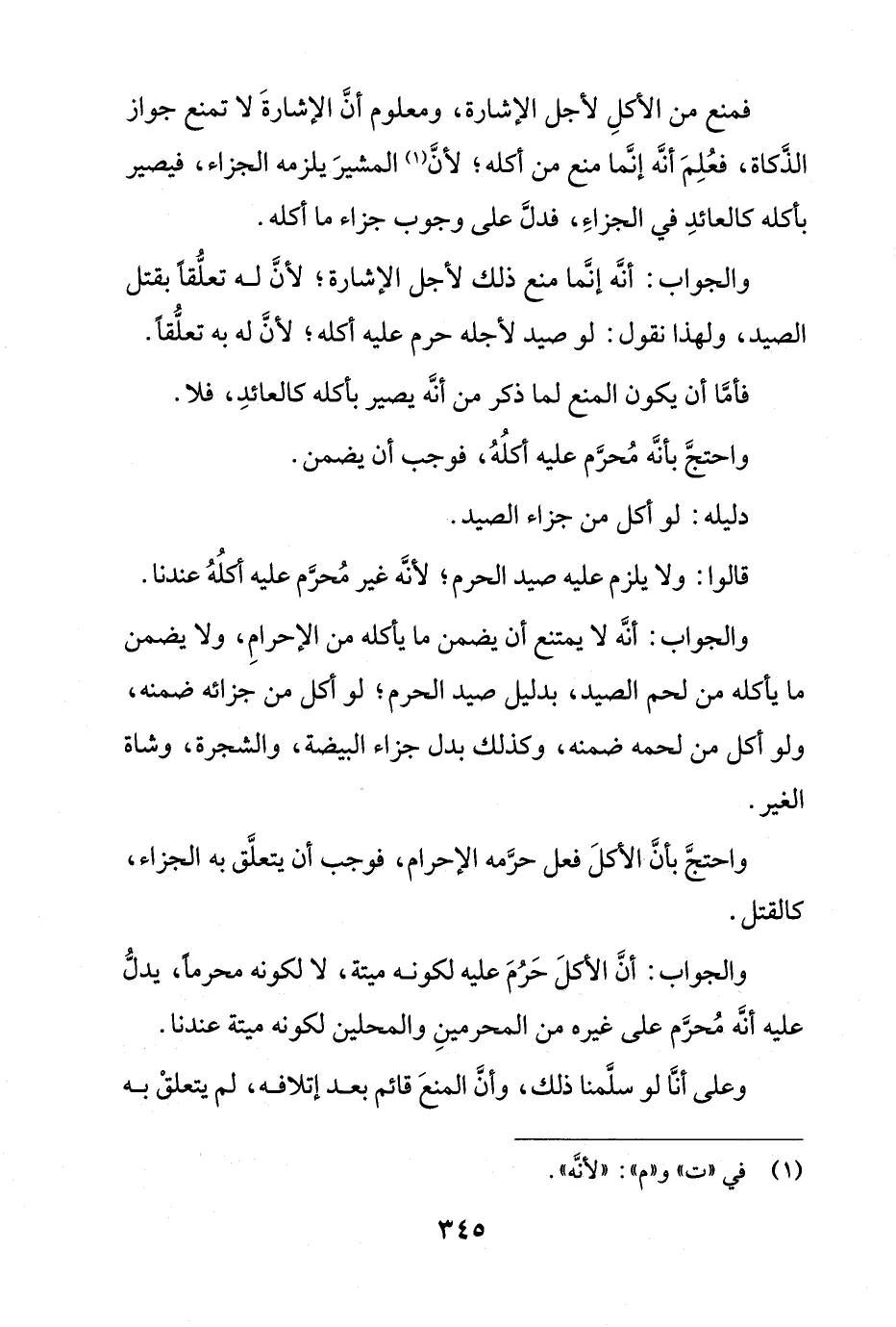 فمنع من الأكل لأجل الإشارة، ومعلوم أن الإشارة لا تمنع جواز الذكاة، فعُلم أنه إنما منع من أكله؛ لأن المشير يلزمه الجزاء، فيصير بأكله كالعائد في الجزاء، فدل على وجوب جزاء ما أكله.