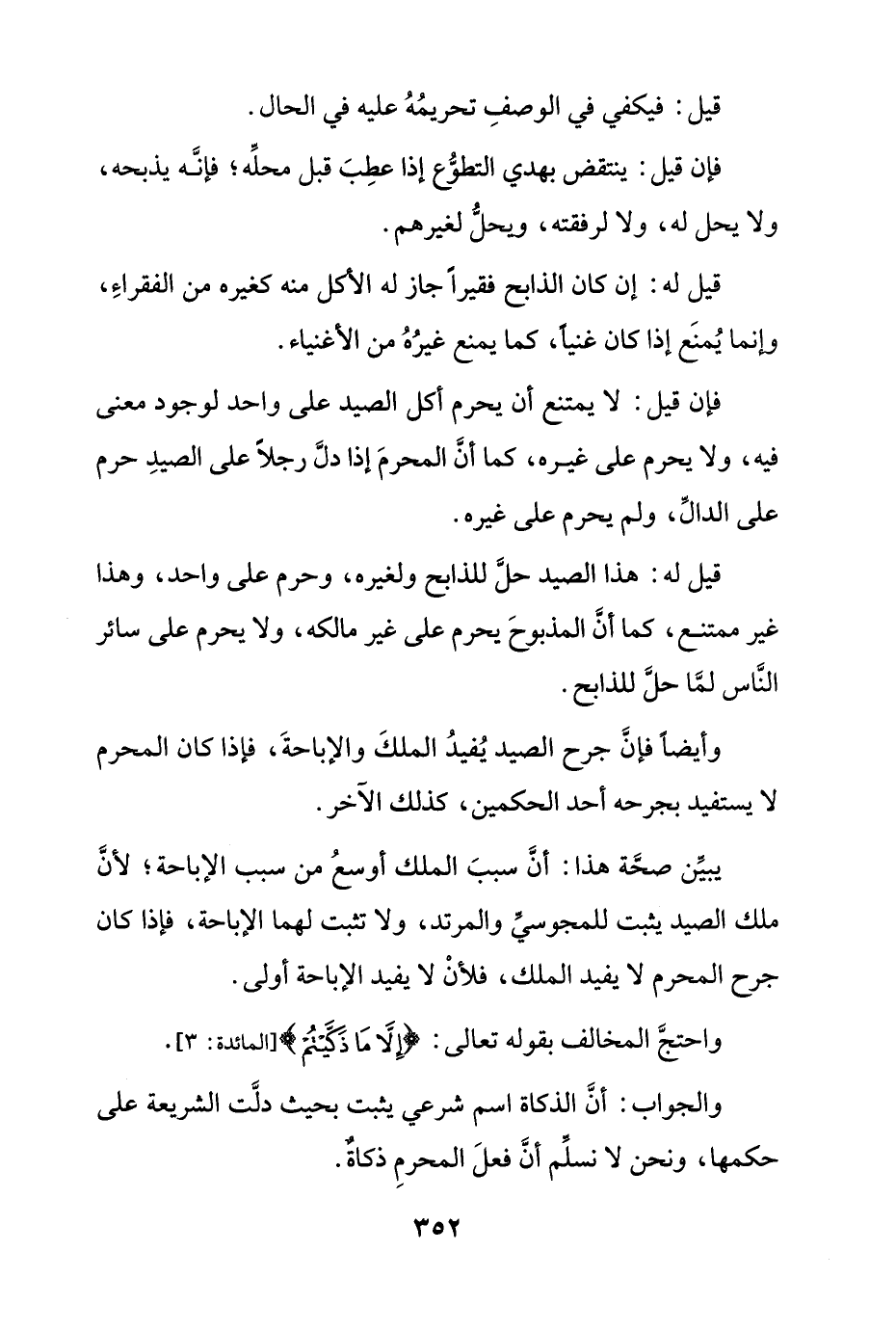 يبين صحة هذا: أن سبب الملك أوسع من سبب الإباحة؛ لأن ملك الصيج يثبت للمجوسي والمرتد، ولا تثبت لهما الإباحة، فإذا كان جرح المحرمم لا يفيد الملك، فلأن لا يفيد الإباحة أولى.