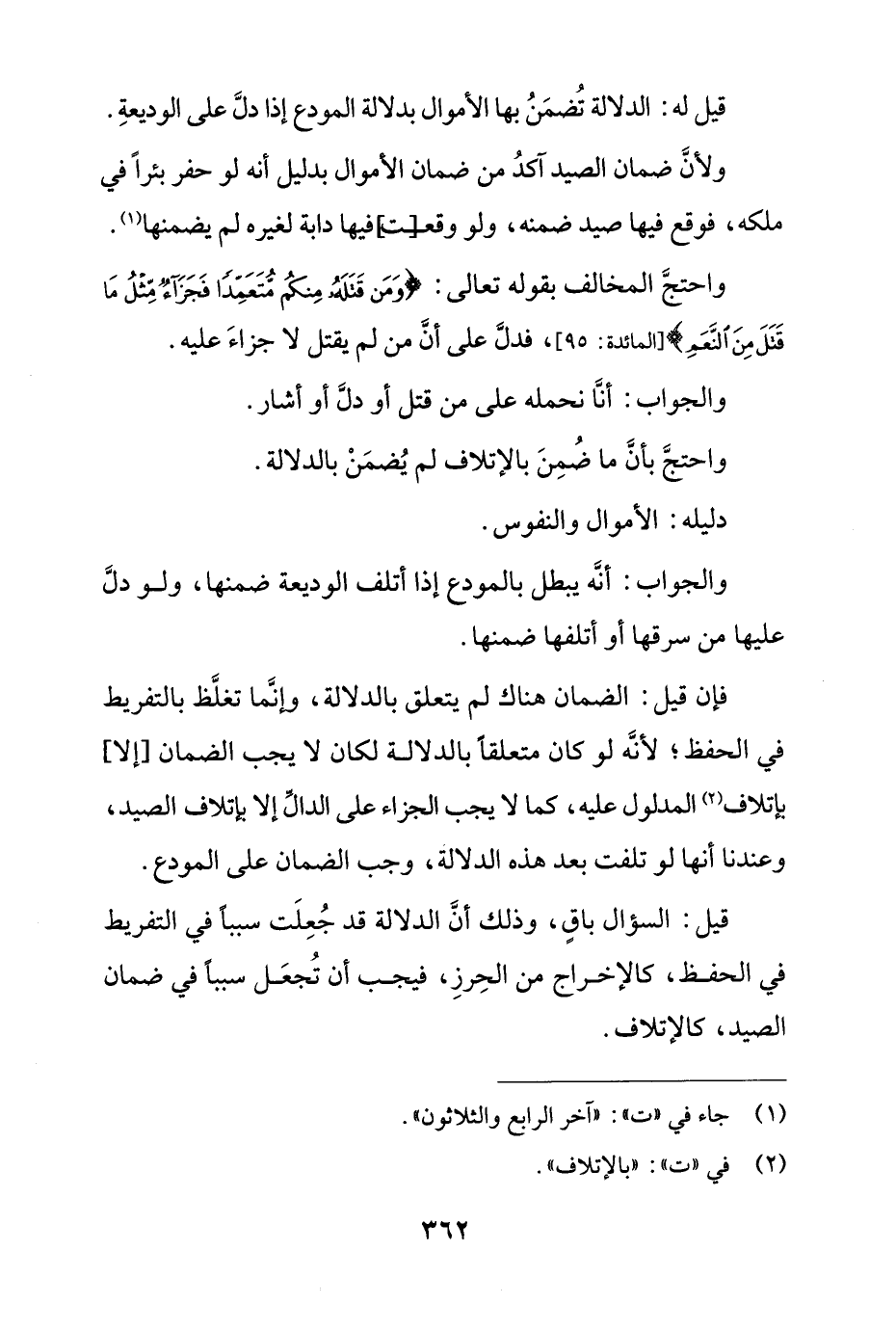 قيل: السؤال باقٍ، وذلك أن الدلالة قد جُعلت سبباً في التفريط في الحفظ، كالإخراج من الحرز، فيجب أن تُجعل سبباً في ضمان الصيد، كالإتلاف.