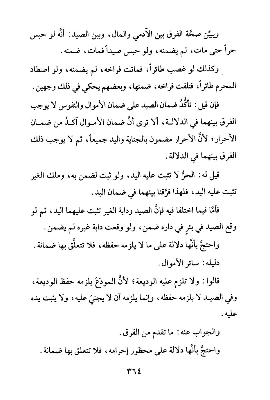 فأما فيما اختلفنا فيه فإن الصيد ودابة الغير تثبت عليهما اليد، ثم لو وقع الصيد في بئر في داره ضمن، ولو وقعت دابة غيره لم يضمن.