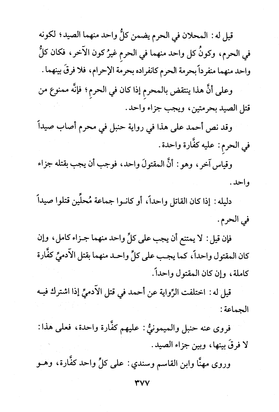 دليله: إذا كان القاتل واحداً، أو كانوا جماعة مُحلين قتلوا صيداً في الحرم.
