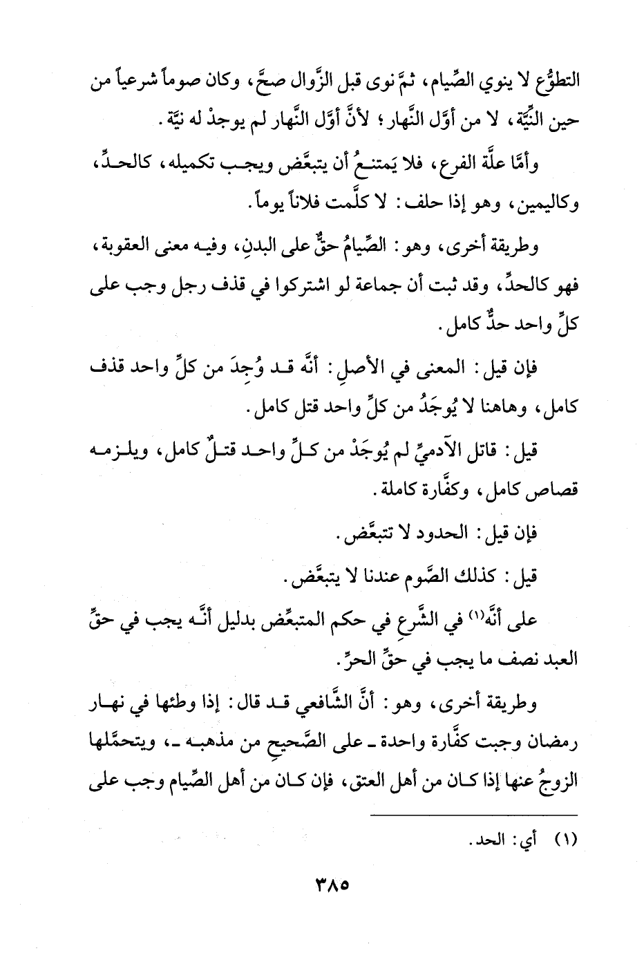 وأما علة الفرع، فلا يمتنع أن يتبعض ويجب تكميله، كالحد، وكاليمين، وهو إذا حلف: لا كلمت فلاناً يوماً.
