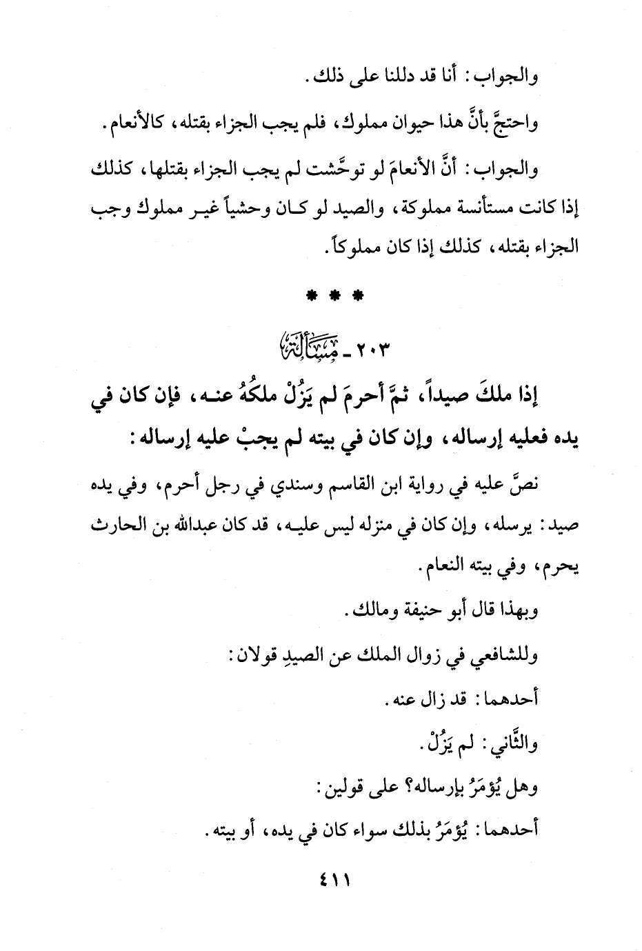والجواب: أن الأنعام لو توحشت لم يجب الجزاء بقتلها، كذلك إذا كانت مستأنسة مملوكة، والصيد لو كان وحشياً غير مملوك وجب الجزاء بقتله، كذلك إذا كان مملوكاً.
