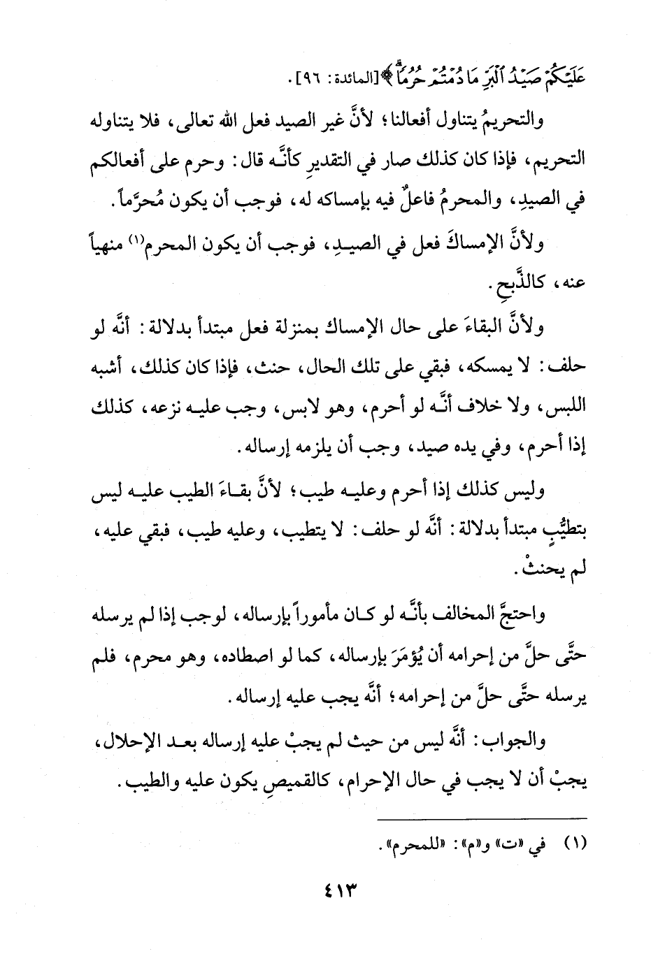 عَلَيْكُمْ صَيْدُ الْبَرِّ مَا دُمْتُمْ حُرُمًا} [المائدة: 96].