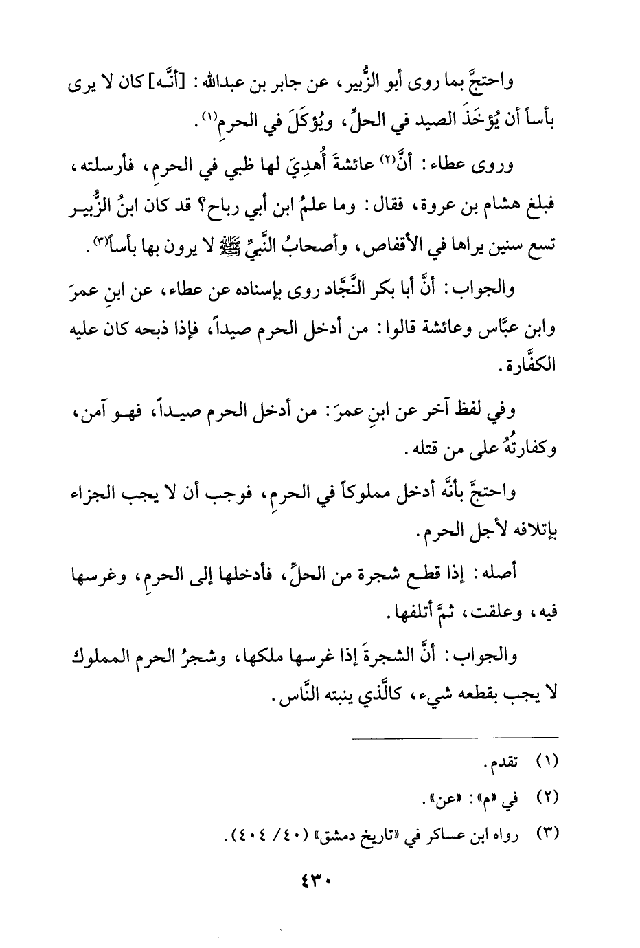 والجواب: أن أبا بكر النجاج روى بإسناده عن عطاء، عن ابن عمر وابن عباس وعائشة قالوا: من أدخل الحرم صيداً، فإذا ذبحه كان عليه الكفارة.