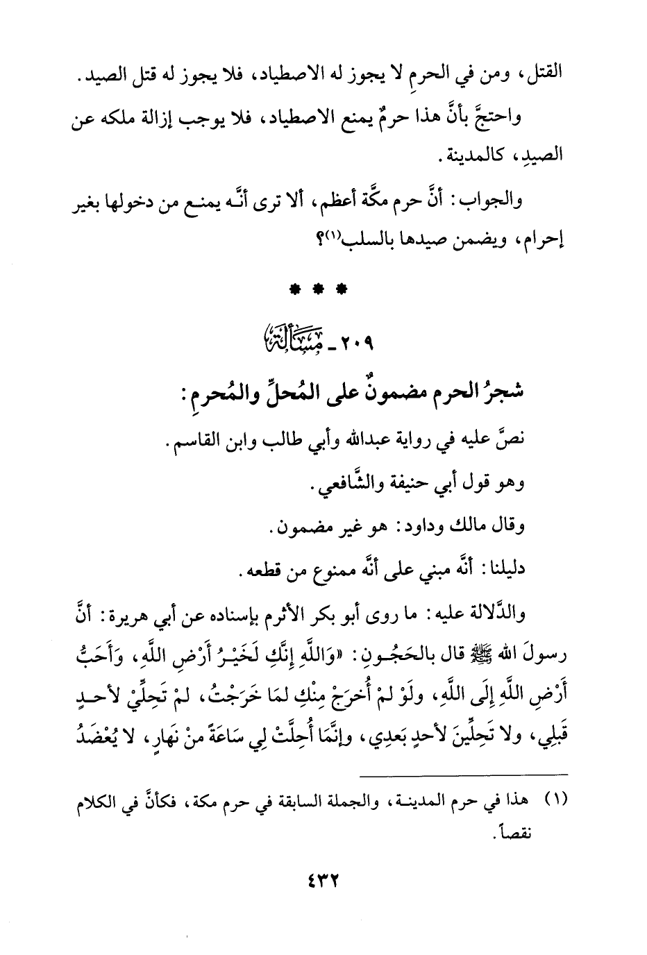والجواب: أن حرم مكة أعظم، ألا ترى أنه يمنع من دخولها بغير إحرام، ويضمن صيدها بالسلب؟