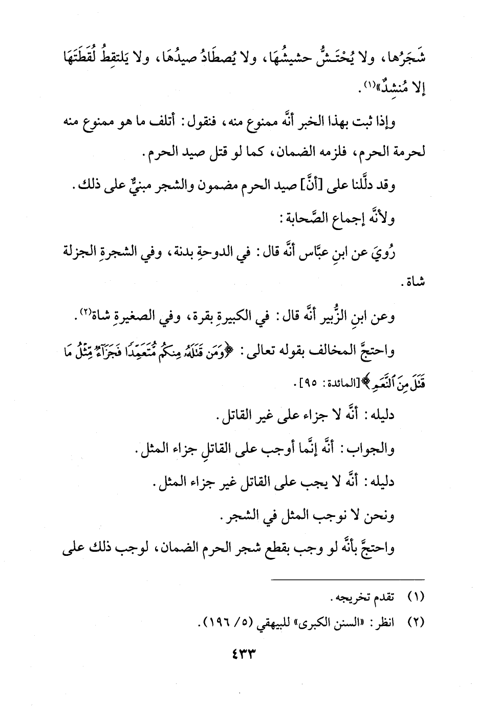 وقد دللنا على [أن] صيد الحرم مضمون والشجر مبني على ذلك.