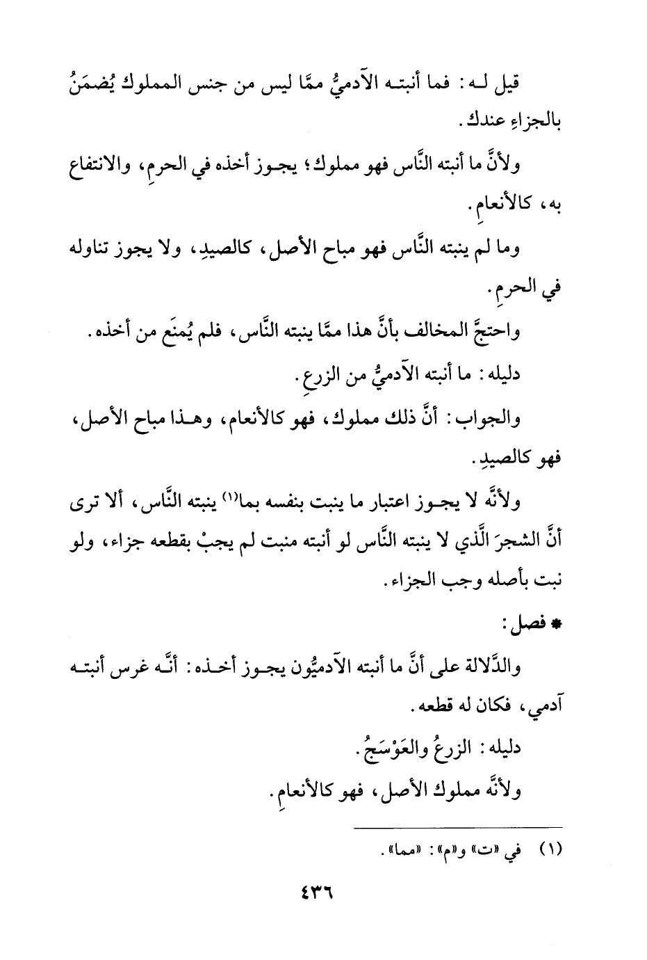ولأنه لا يجوز اعتبار ما ينبت بنفسه بما ينبته الناس، ألا ترى أن الشجر الذي لا ينبته الناس لو أنبته منبت لم يجب بقطعه جزاء، ولو نبت بأصله وجب الجزاء.