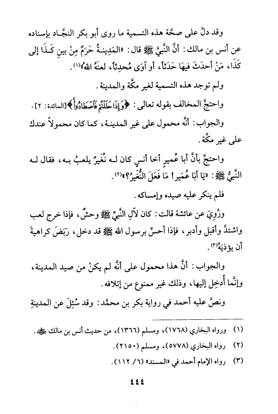 وقد دل على صحة هذه التسمية ما روى أبو بكر النجاد بإسناده عن أنس بن مالك: أن النبي صلى الله عليه وسلّم قال: "المدينة حرم من بين كذا إلى كذا، من أحدث فيها حدثاً، أو آوى مُحدثاً، لعنه الله".