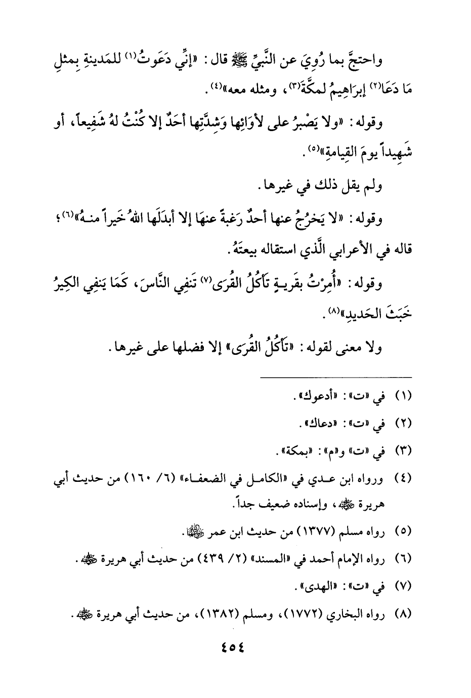 واحتج بما روي عن النبي صلى الله عليه وسلّم قال: "إني دعوت للمدينة بمثل ما دعا إبراهيم لمكة، ومثله معه".