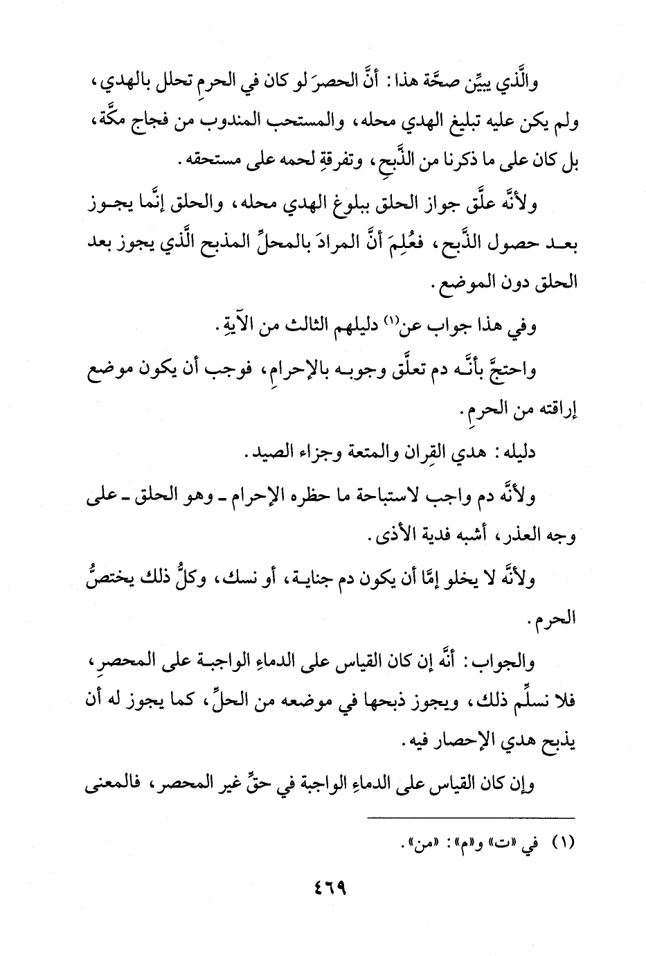 ولأنه علق جواز الحلق ببلوغ الهدي محله، والحلق إنما يجوز بعد حصول الذبح، فعُلم أن المراد بالمحل المذبح الذي يجوز بعد حصول الذبح، فعُلم أن المراد بالمحل المذبح الذي يجوز بعد الحلق دون الموضع.
