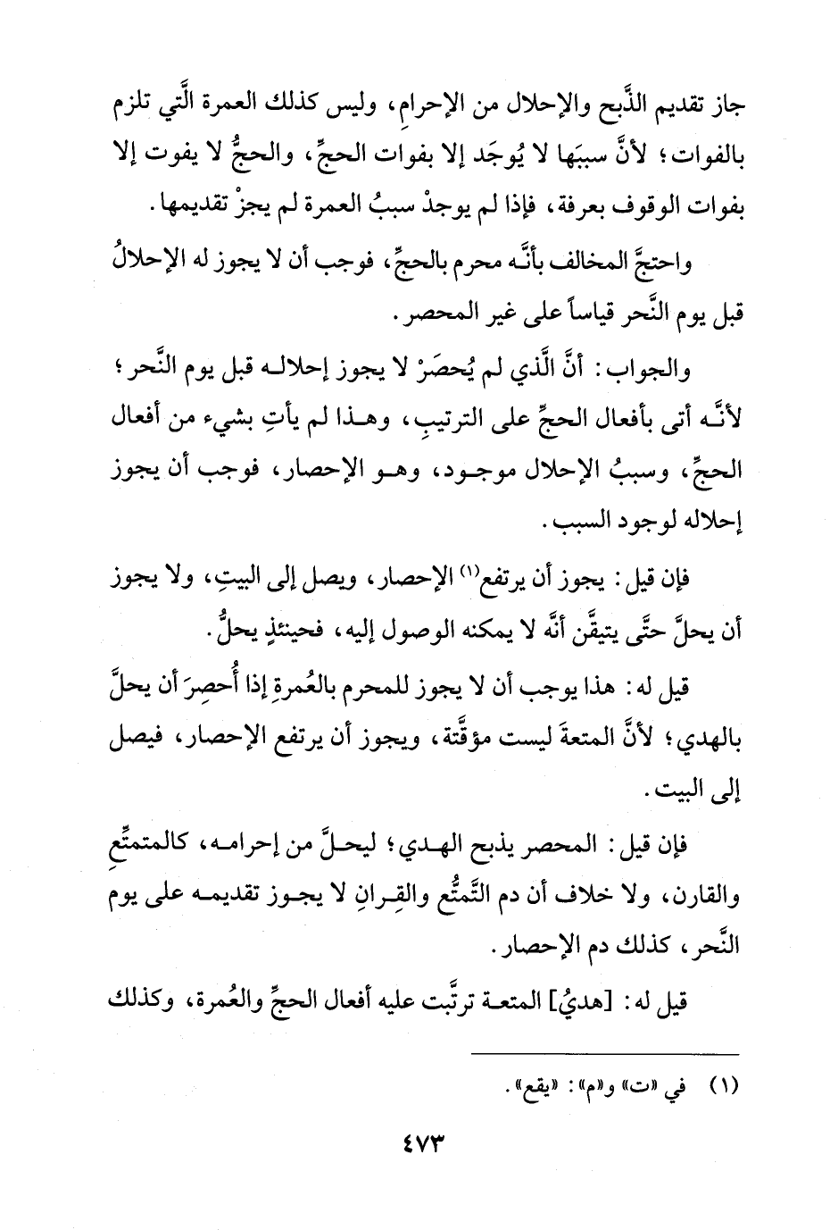 والجواب: أن الذي لم يُحصر لا يجوز إحلاله قبل يوم النحر؛ لأنه أتى بأفعال الحج على الترتيب، وهذا لم يأتِ بشيء من أفعال الحج، وسبب الإحلال موجود، وهو الإحصار، فوجب أن يجوز إحلاله لوجود السبب.