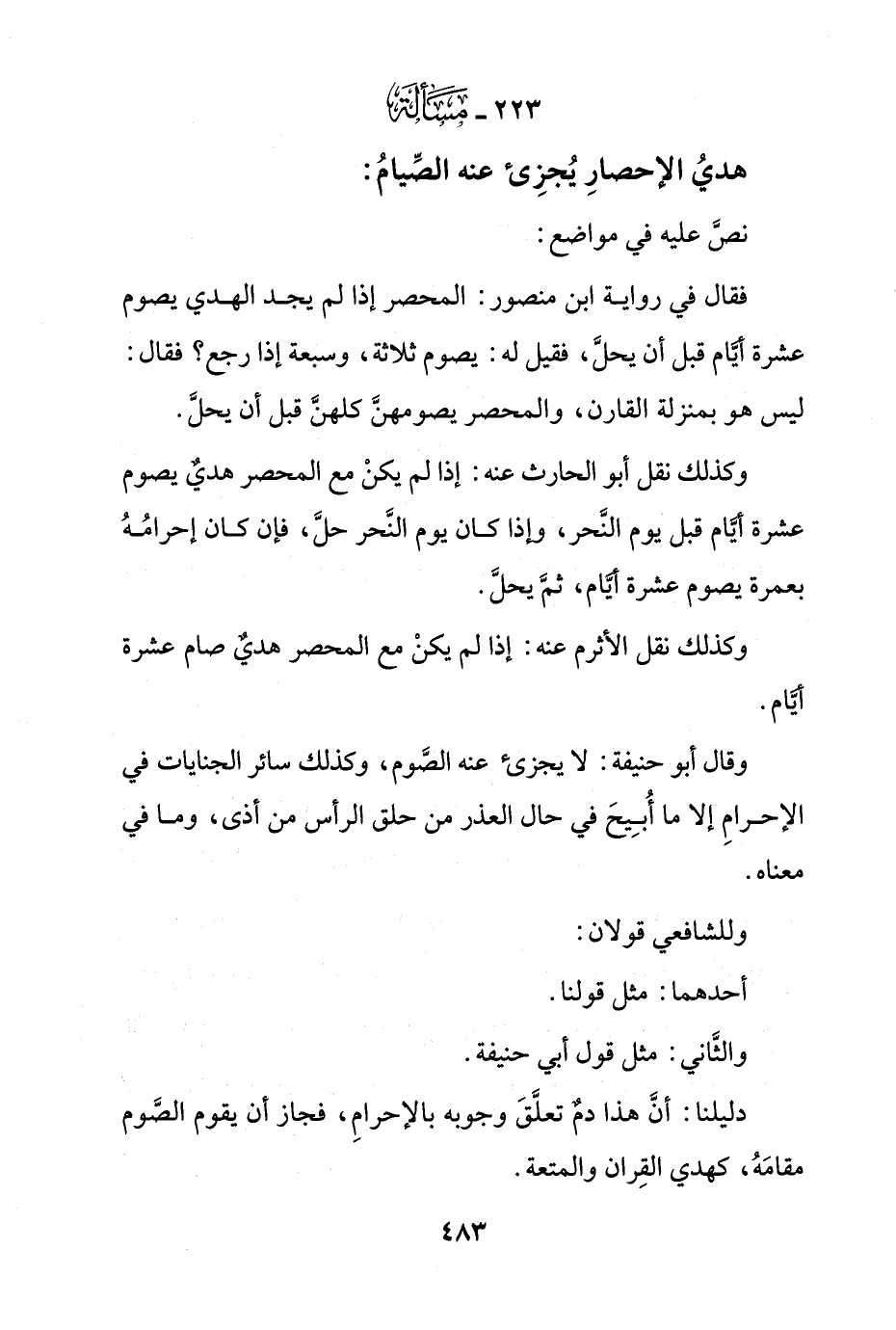 وقال أبو حنيفة: لا يجزئ عنه الصوم، وكذلك سائر الجنايات في الإحرام إلا ما أُبيح في حال العذر من حلق الرأس من أذى، وما في معناه.