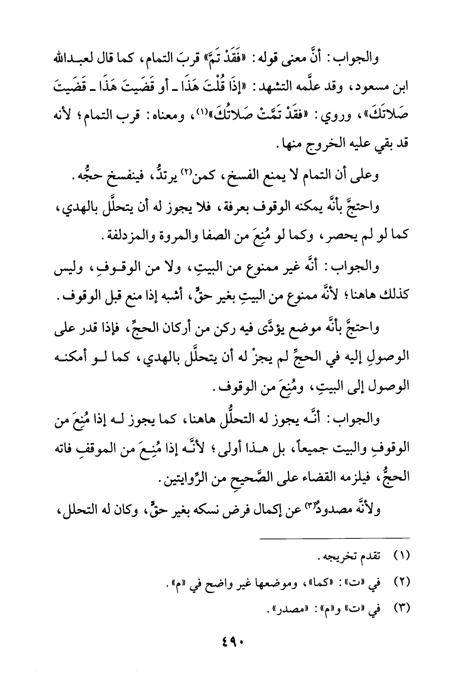 والجواب: أن معنى قوله: "قد تم" قرب التمام، كما قال لعبد الله ابن مسعود، وقد علمه التشهد: "إذا قلت هذا - أو قضيت هذا- قضيت صلاتك"، وروي: "فقد تمت صلاتك"، ومعناه: قرب التمام؛ لأنه قد بقي عليه الخروج منها.