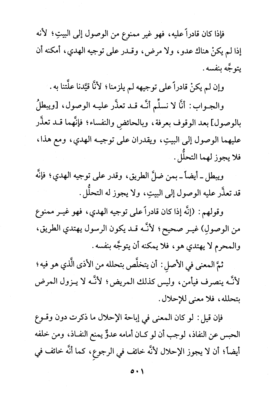 وقولهم: (إنه إذا كان قادراً على توجيه الهدي، فهو غير ممنوع من الوصول) غير صحيح؛ لأنه قد يكون الرسول يهتدي الطريق، والمحرم لا يهتدي هو، فلا يمكنه أن يتوجه بنفسه.