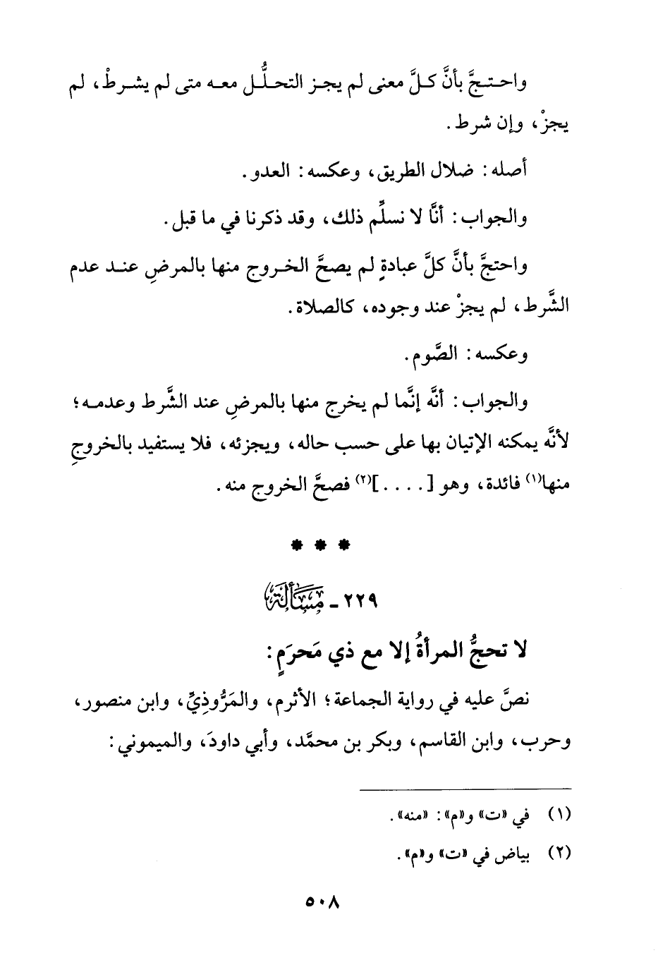 والجواب: أنه إنما لم يخرج منها بالمرض عند الشرط وعدمه؛ لأنه يمكنه الإتيان بها على حسب حاله، ويجزئه، فلا يستفيد بالخروج منها فائدة، وهو [....] فصح الخروج منه.