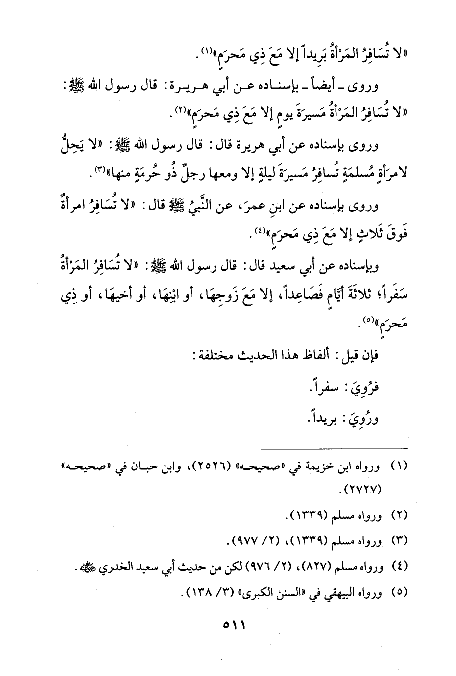 "لا تسافر المرأة بريداً إلا مع ذي محرم".