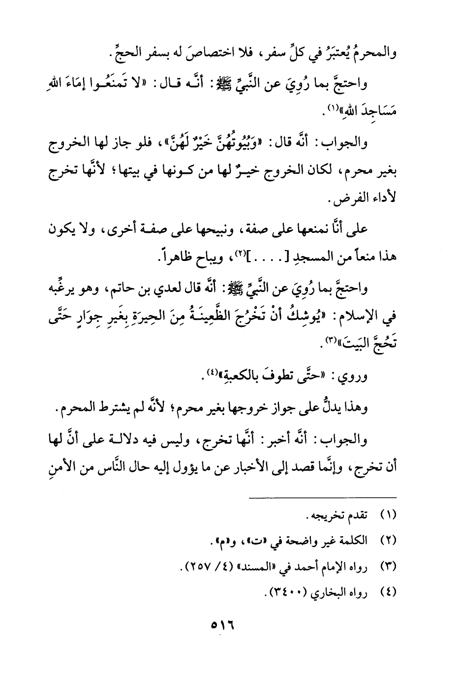 والجواب: أنه قال: "وبيوتهن خير لهن"، فلو جاز لها الخروج بغير محرم، لكان الخروج خير لها من كونها في بيتها؛ لأنها تخرج لأداء الفرض.