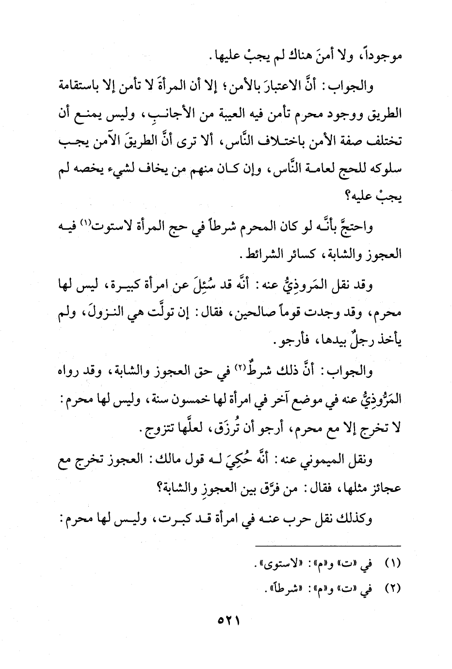 والجواب: أن ذلك شرط في حق العجوز والشابة، وقد رواه المروذي عنه في موضع آخر في امرأة لها خمسون سنة، وليس لها محرم: لا تخرج إلا مع محرم، أرجو أن تُرزق، لعلها تتزوج.