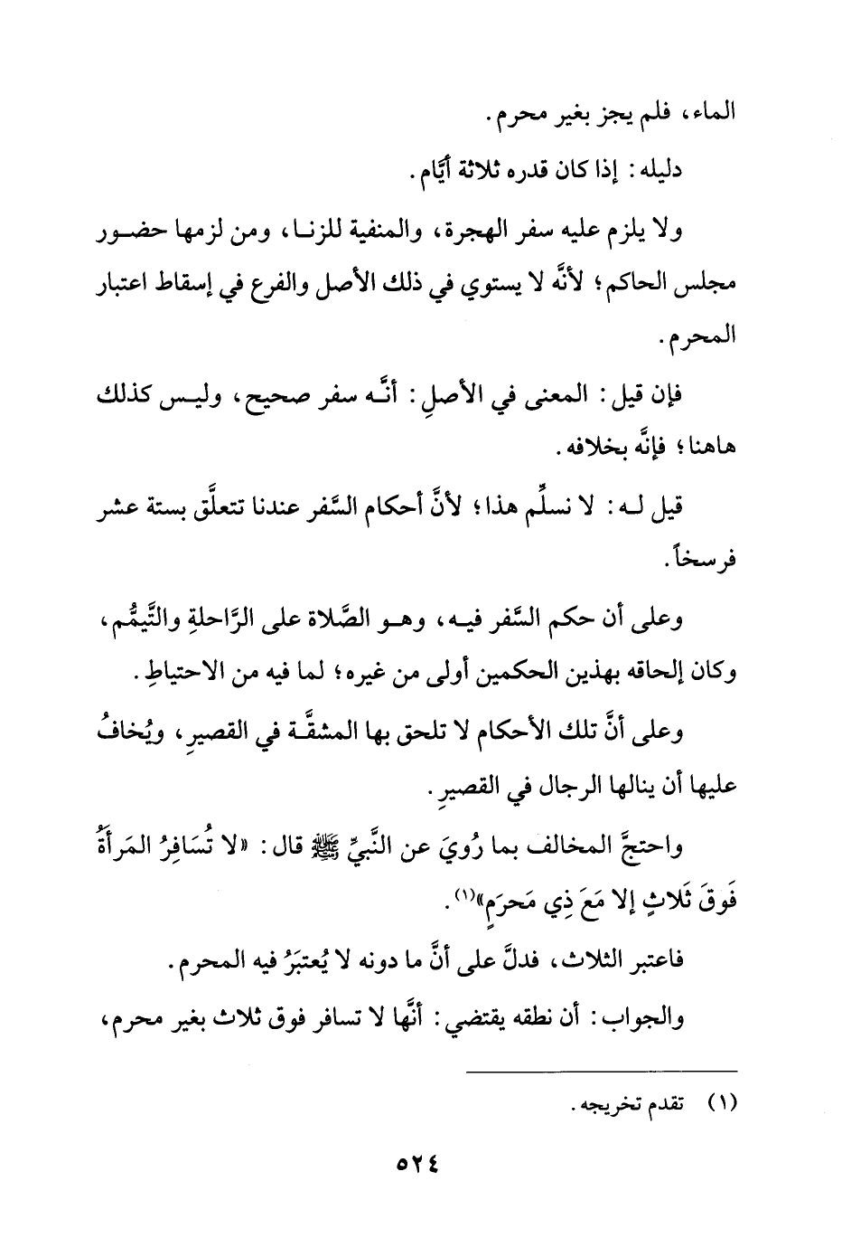 واحتج المخالف بما روي عن النبي صلى الله عليه وسلّم قال: "لا تُسافر المرأة فوق ثلاث إلا مع ذي محرم".