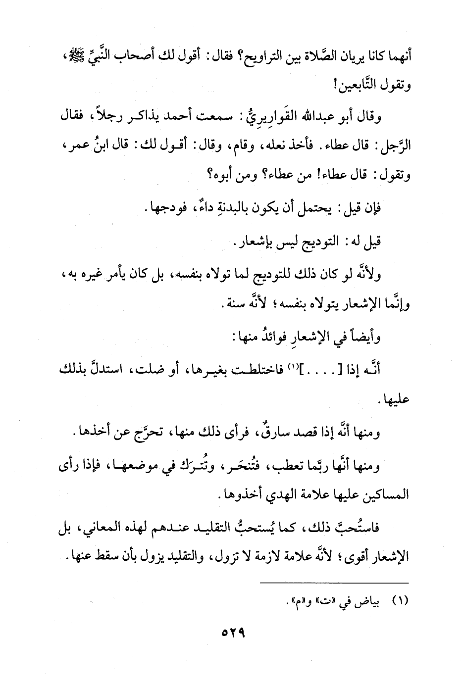 فاستحب ذلك، كما يُستحب التقليد عندهم لهذه المعاني، بل الإشعار أقوى؛ لأنه علامة لازمة لا تزول، والتقليد يزول بأن سقط عنها.