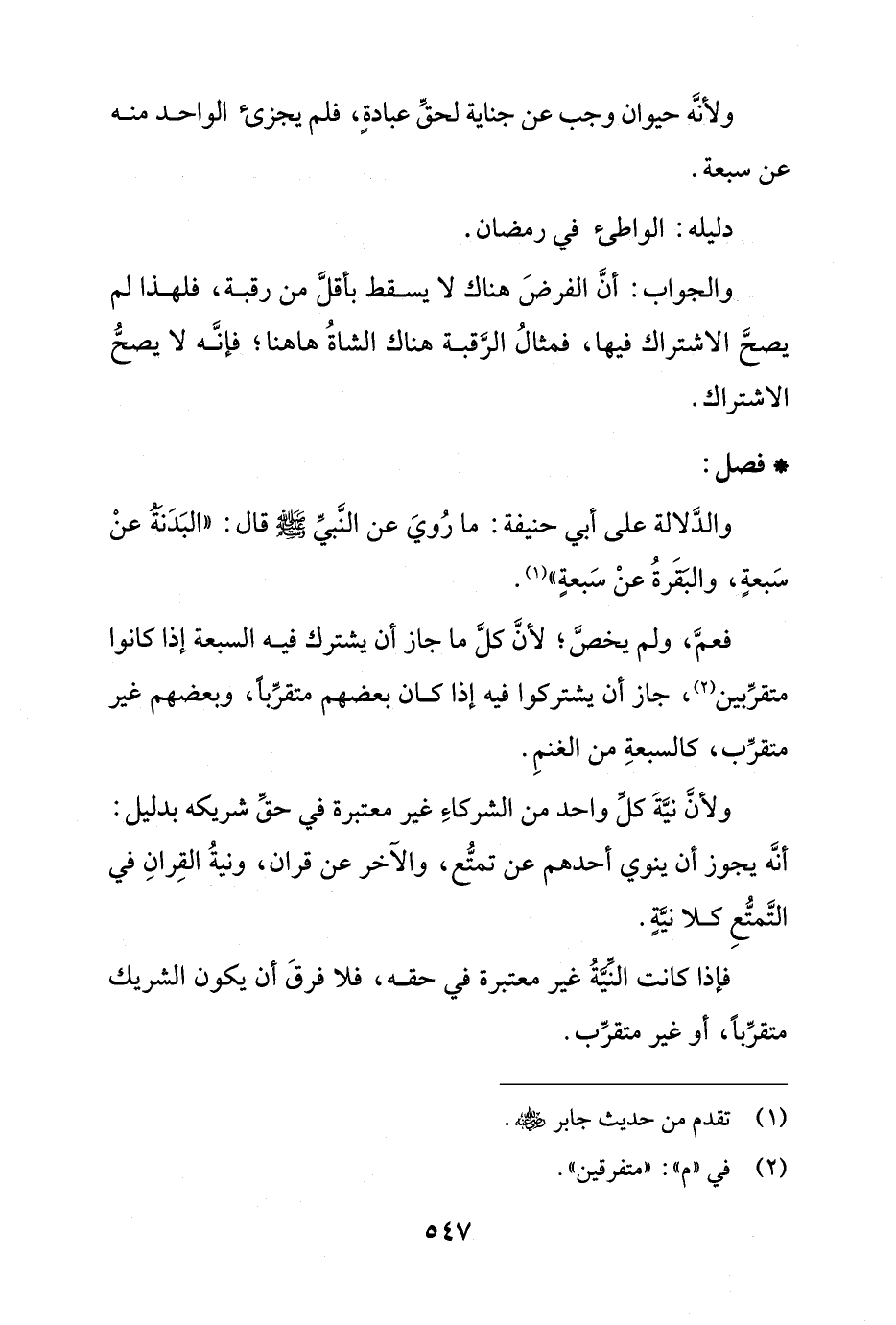 والجواب: أن الفرض هناك لا يسقط بأقل من رقبة، فلهذا لم يصح الاشتراك فيها، فمثال الرقبة هناك الشاة هاهنا؛ فإنه يصح الاشتراك.