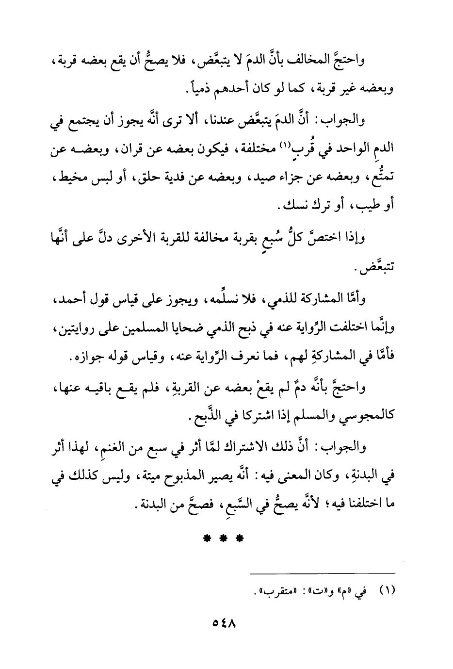 واحتج بأنه دم لم يقع بعضه عن القربة، فلم يقع باقيه عنها، كالمجوسي والمسلم إذا اشتركنا في الذبح.