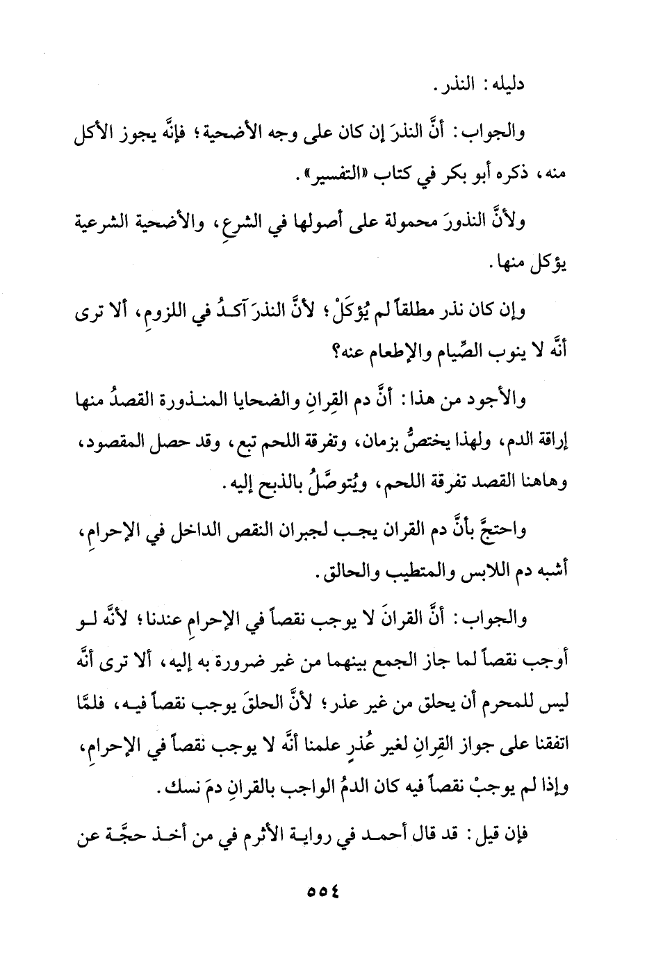 دليله: النذر.