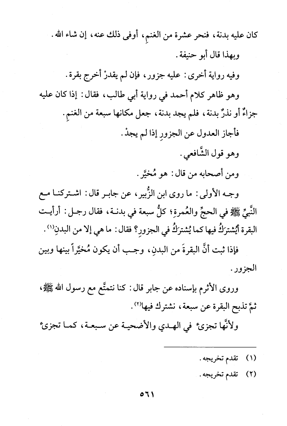 فإذا ثبت أن البقرة من البدن، وجب أن يكون مُخيراً بينها وبين الجزور.