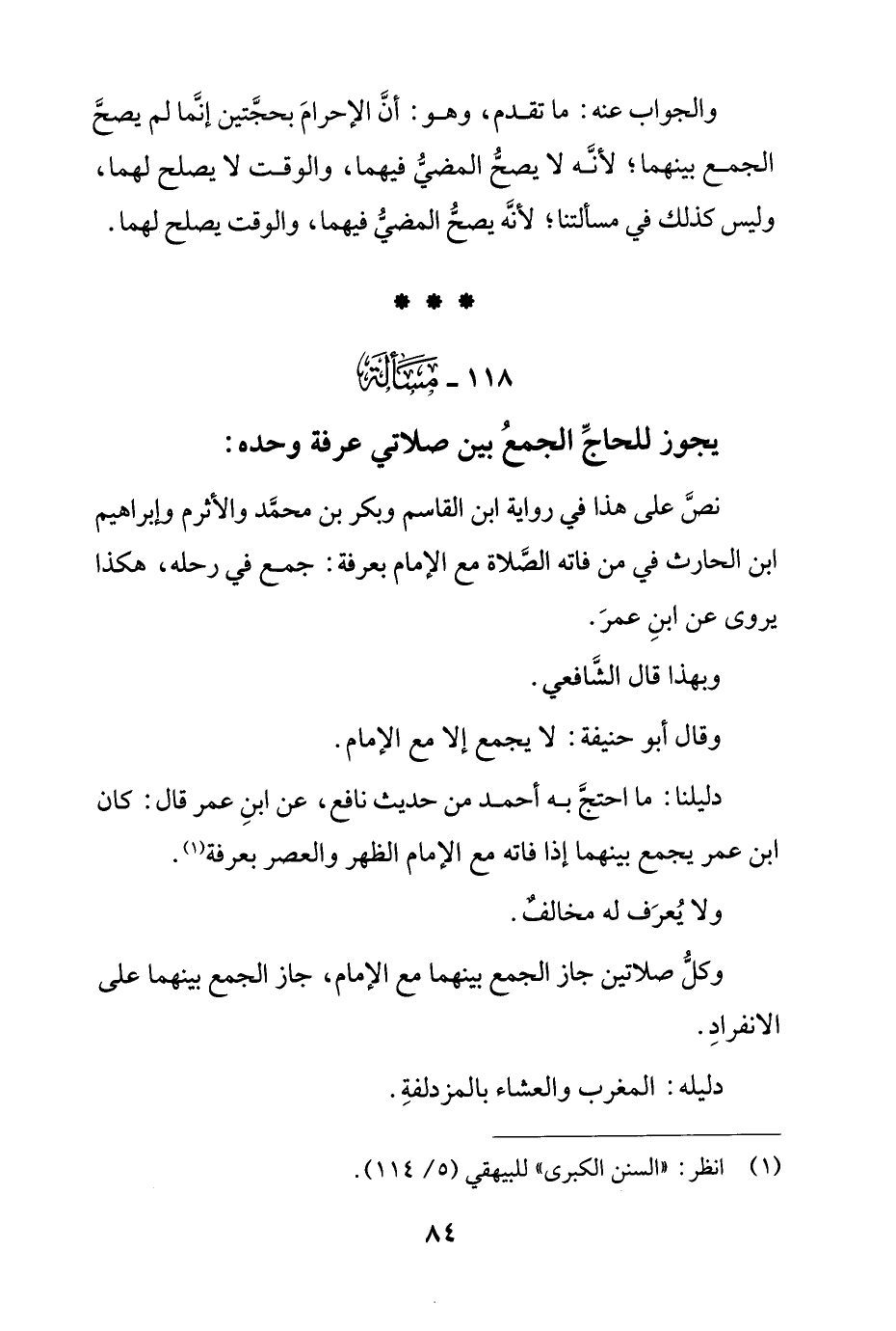 يجوز للحاج الجمع بين صلاتي عرفة وحده: