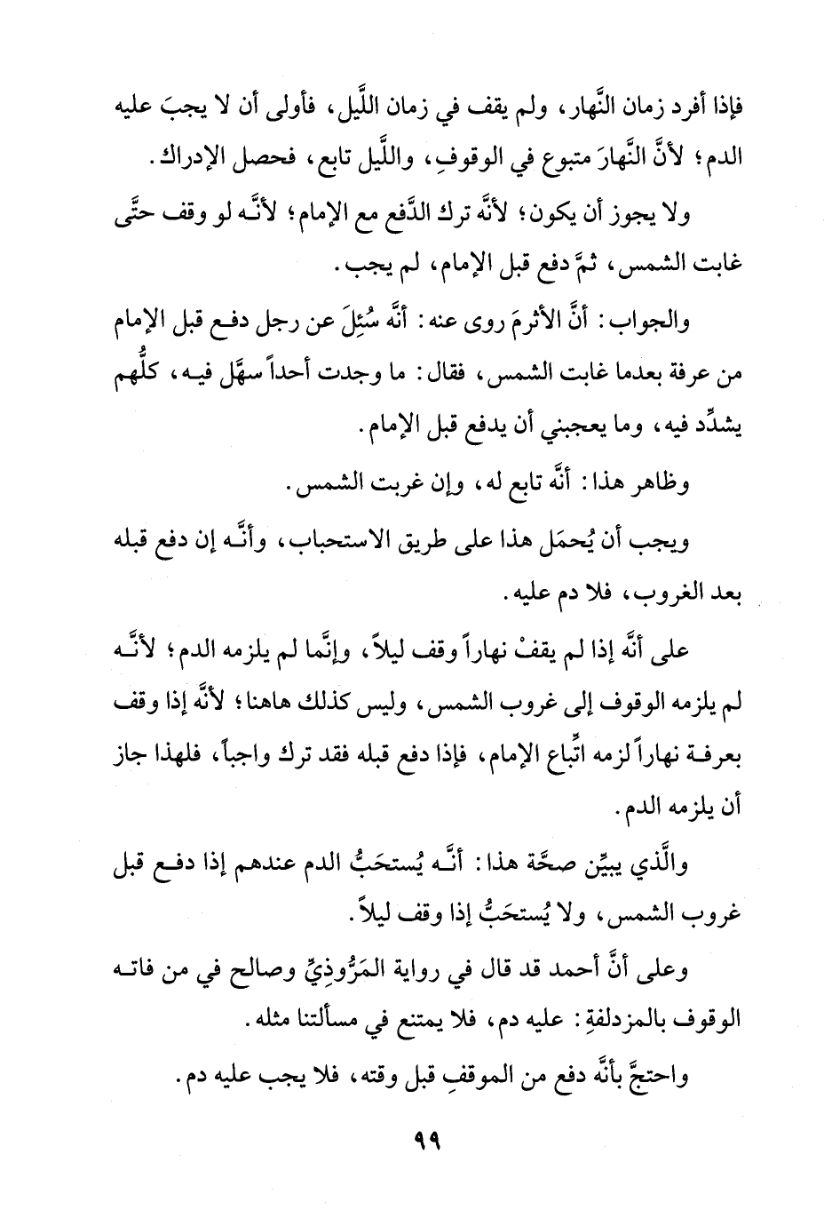 والذي يبين صحة هذا: أنه يُستحب الدم عندهم إذا دفع قبل غروب الشمس، ولا يُستحب إذا وقف ليلاً.