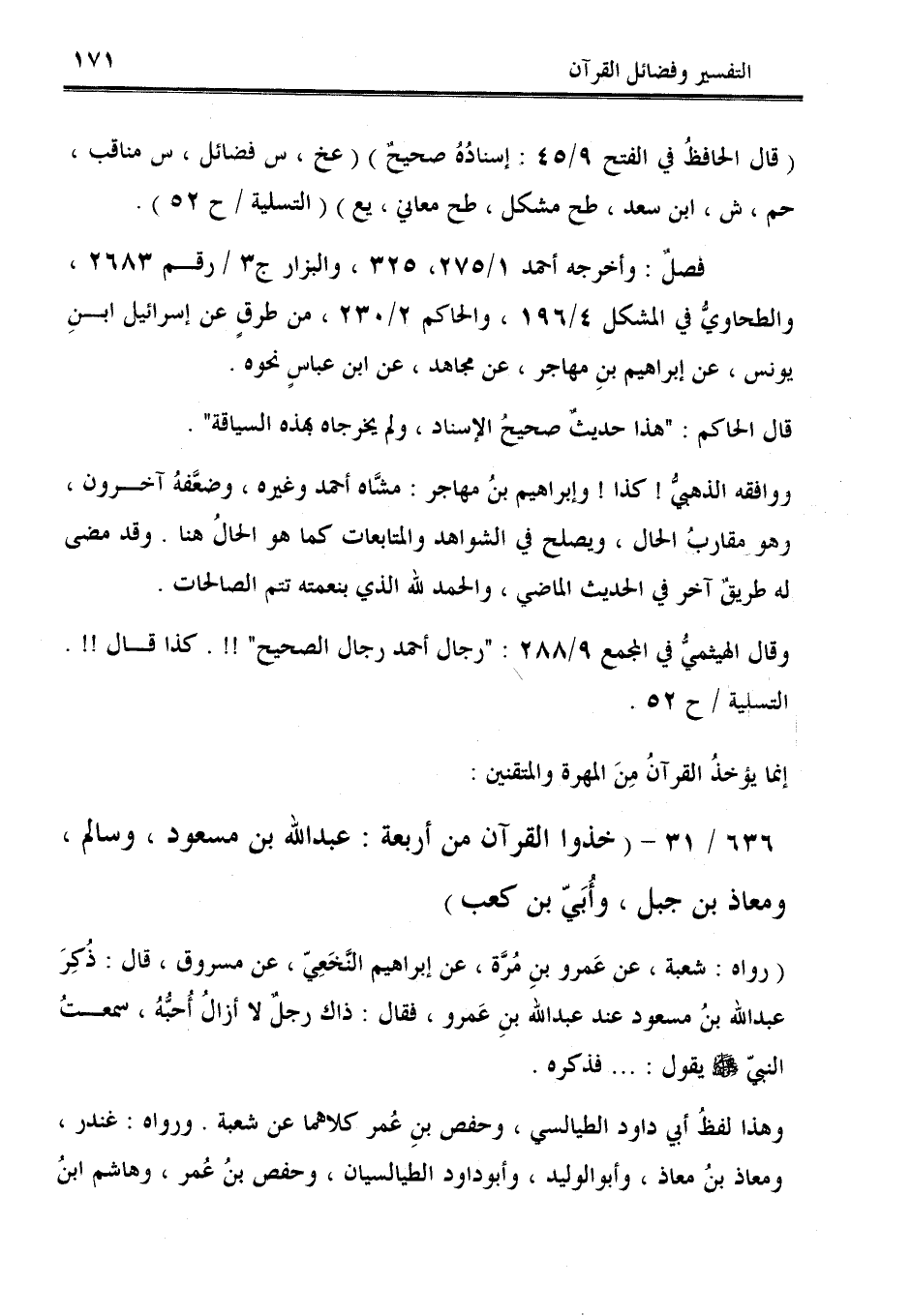 636/ 31 - (خذوا القرآن من أربعة: عبد الله بن مسعود، وسالم، ومعاذ بن جبل، وأُبَيّ بن كعب).