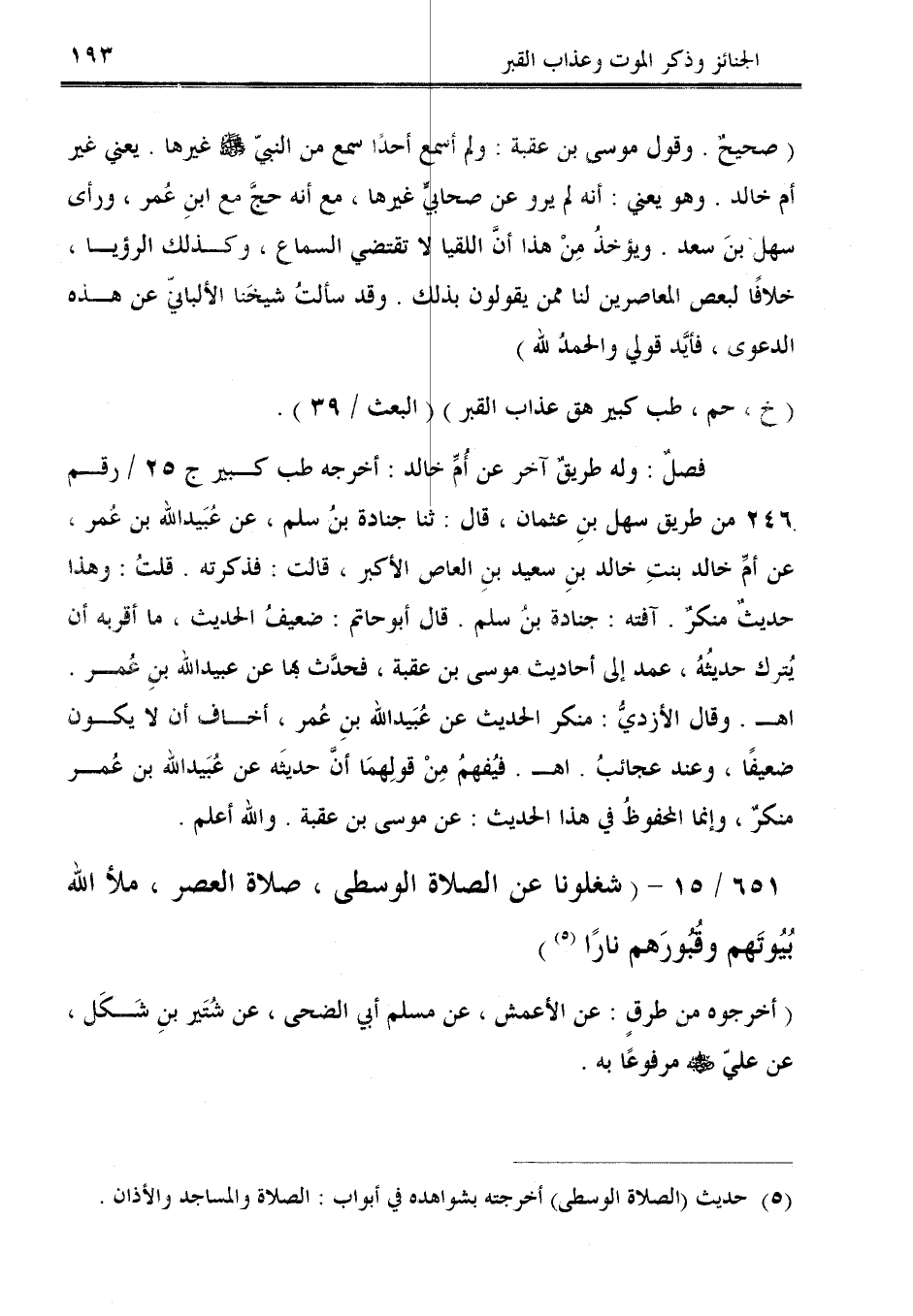 651/ 15 - (شغلونا عن الصلاة الوسطى، صلاة العصر، ملأ الله بُيُوتَهم وقُبُورَهم نارًا (¬5)).