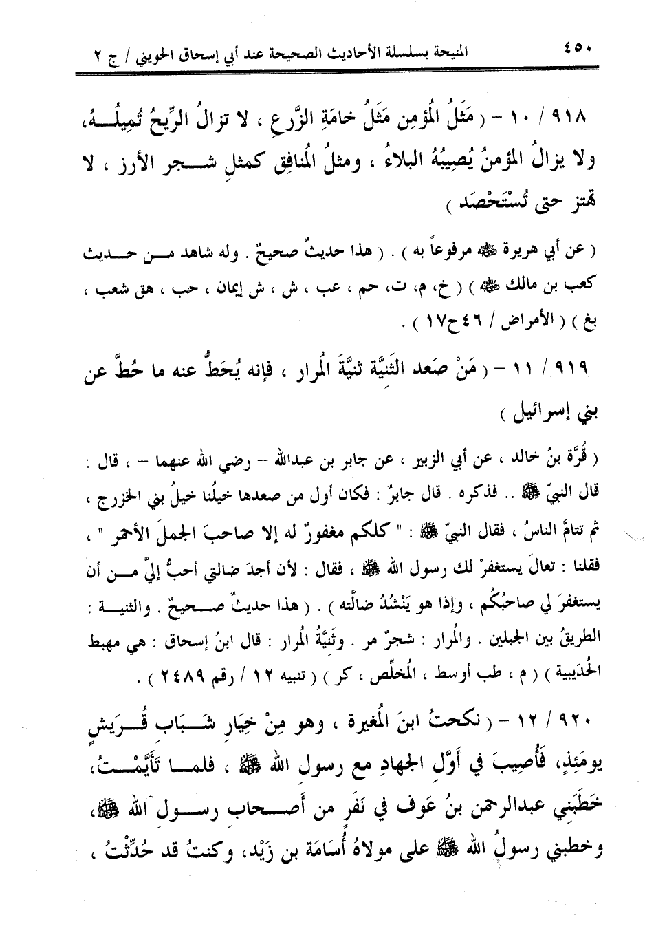 919/ 11 - (مَنْ صَعد الثَنِيَّة ثنيَّةَ المُرار، فإنّه يُحَطُّ عنه ما حُطَّ عن بني إسرائيل).