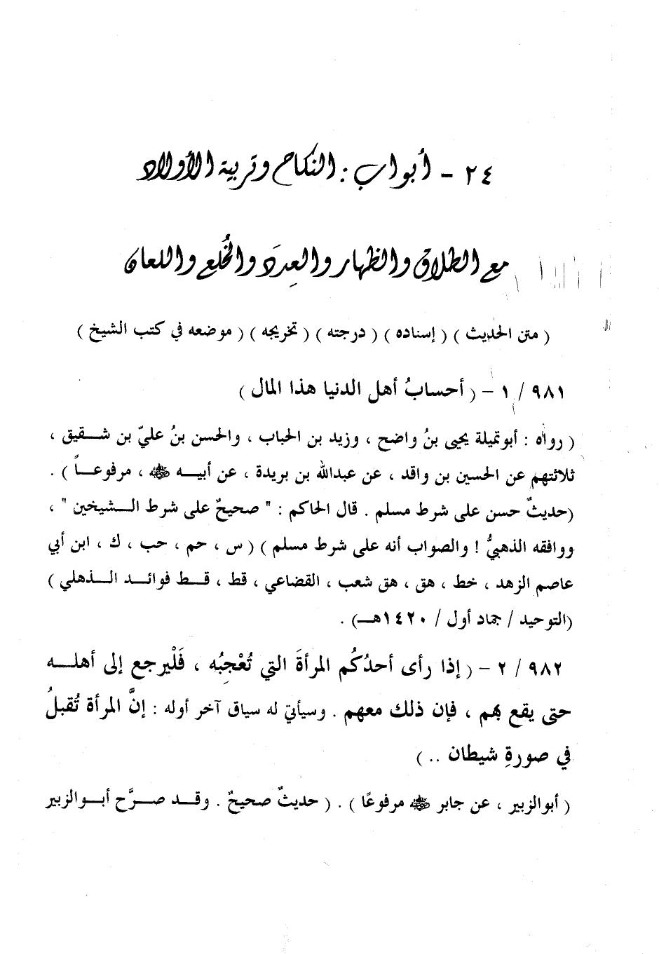 24 - أبواب: النكاح وتربية الأولاد مع الطلاق والظهار والعِدَد والخُلع واللعان