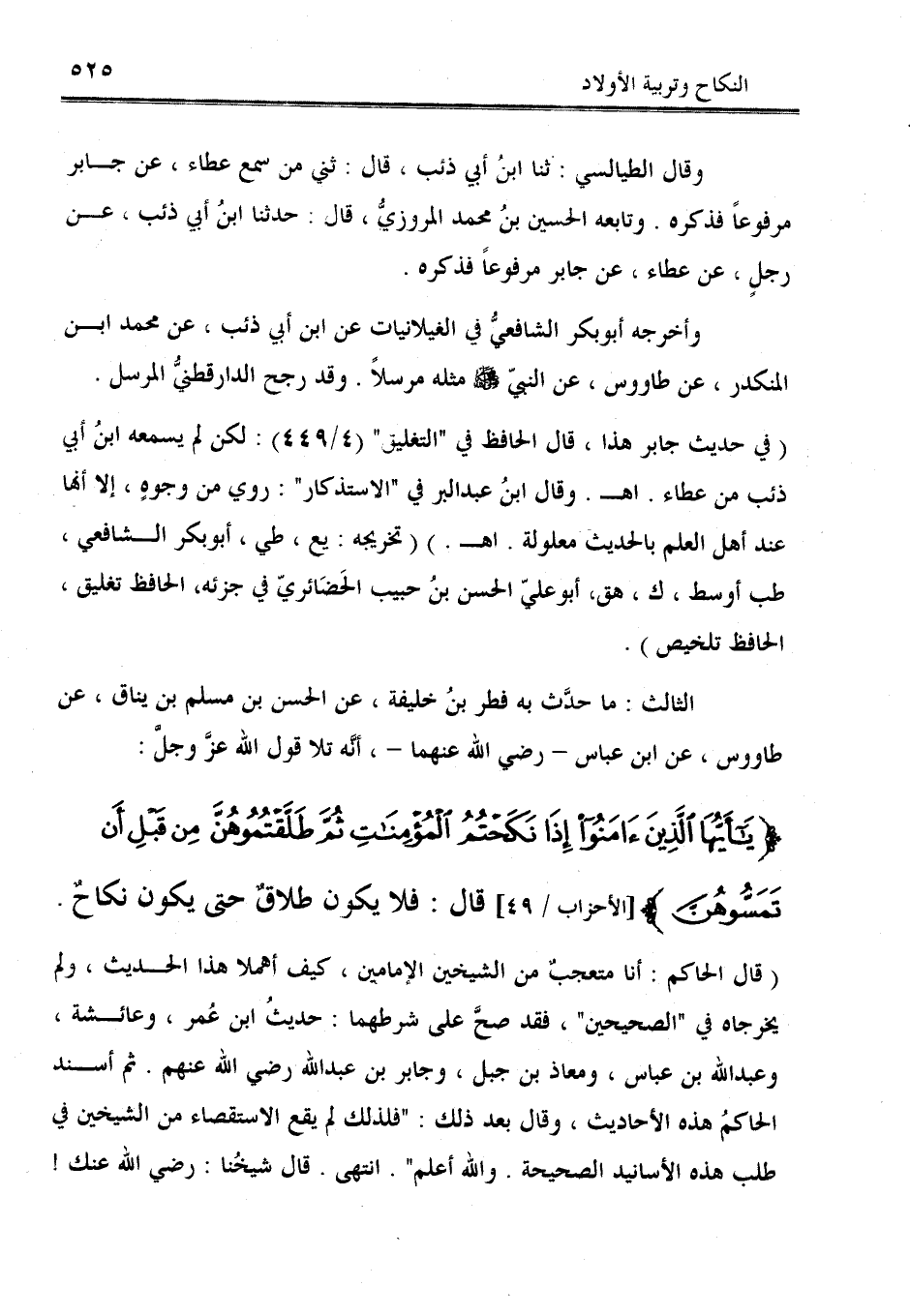 (في حديث جابر هذا، قال الحافظ في "التغليق": (4/ 449) لكن لم يسمعه ابنُ أبي ذئب من عطاء. اهـ. وقال ابنُ عبد البر في "الاستذكار": روي من وجوهٍ، إلا أنها عند أهل العلم بالحديث معلولة. اهـ.) (تخريجه: يع، طي، أبو بكر الشافعي، طب أوسط، ك، هق، أبو عليّ الحسن بنُ حبيب الحَضَائريّ في جزئه، الحافظ تغليق، الحافظ تلخيص).