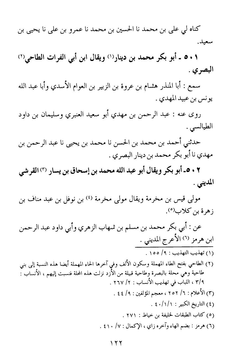 502- أبو بكر ، وَيُقَال : أبو عبد الله محمد بن إسحاق بن يسار القرشي المديني.