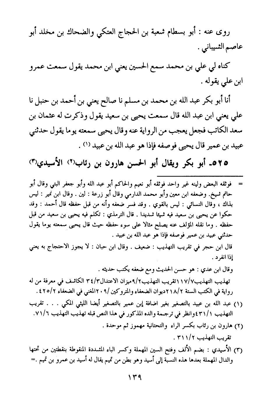 أَخْبَرنا أبو بكر عبد الله بن محمد بن مسلم ، حَدَّثنا صالح ، يَعنِي ابن أحمد بن حنبل ، حَدَّثنا علي ، يَعنِي ابن عبد الله ، قال : سَمِعتُ يحيى بن سعيد يقول وذكرت له عثمان بن سعد الكاتب فجعل يعجب من الرواية عنه وقال يحيى سمعته يوما يقول حدثني عبيد بن عُمَير قال يحيى فوصفه فإذا هو عبد الله بن عبيد.