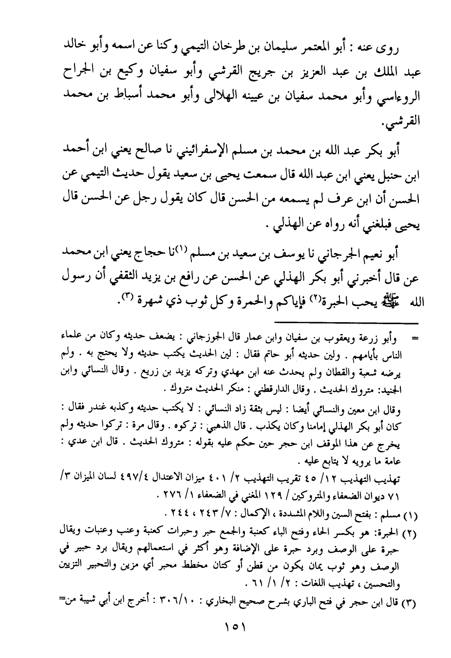 أبو نعيم الجرجاني ، حَدَّثنا يوسف بن سعيد بن مسلم ، حَدَّثنا حجاج ، يَعنِي ابن محمد عن قال أخبرني أبو بكر الهذلي عن الحسن عن رافع بن يزيد الثقفي أن رسول الله صلى الله عليه وسلم يحب الحبرة فإياكم والحمرة وكل ثوب ذي شهرة.