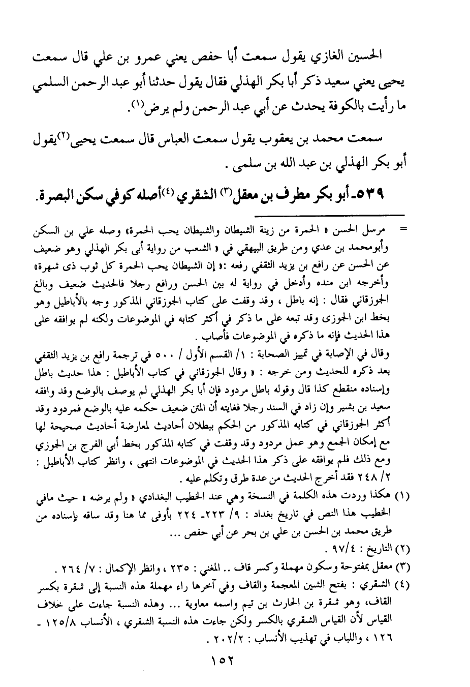 539- أبو بكر مطرف بن معقل الشقري أصله كوفي سكن البصرة سمعت أبا سعيد الحسن بن أبي الحسن البصري ، وَأبا عَمْرو عامر بن شراحيل الشعبي.