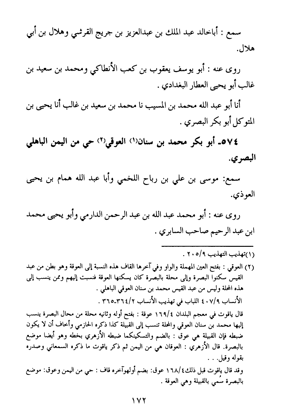 574- أبو بكر محمد بن سنان العوقي حي من اليمين الباهلي البصري.