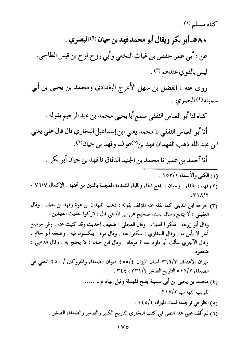 580- أبو بكر ، وَيُقَال : أبو محمد فهد بن حيان البصري.