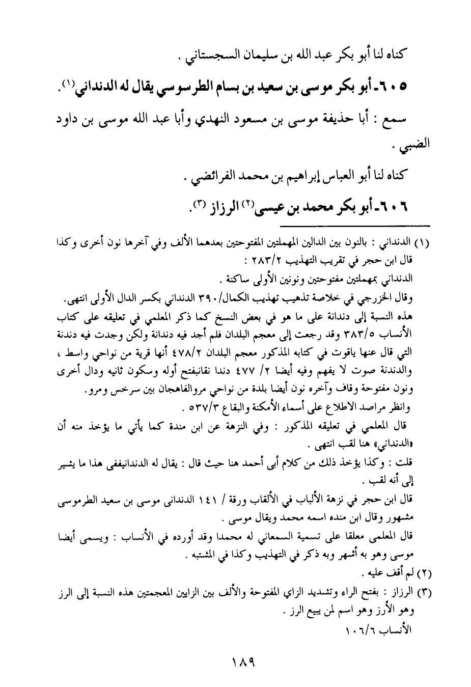 605- أبو بكر موسى بن سعيد بن بسام الطرسوسي يقال له الدنداني.