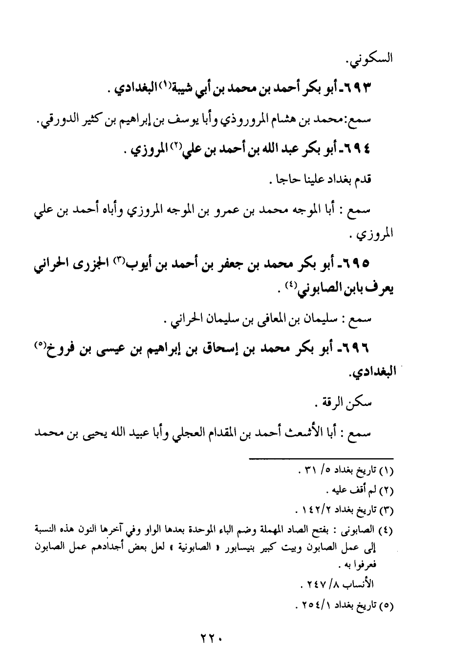 696- أبو بكر محمد بن إسحاق بن إبراهيم بن عيسى بن فروخ البغدادي.