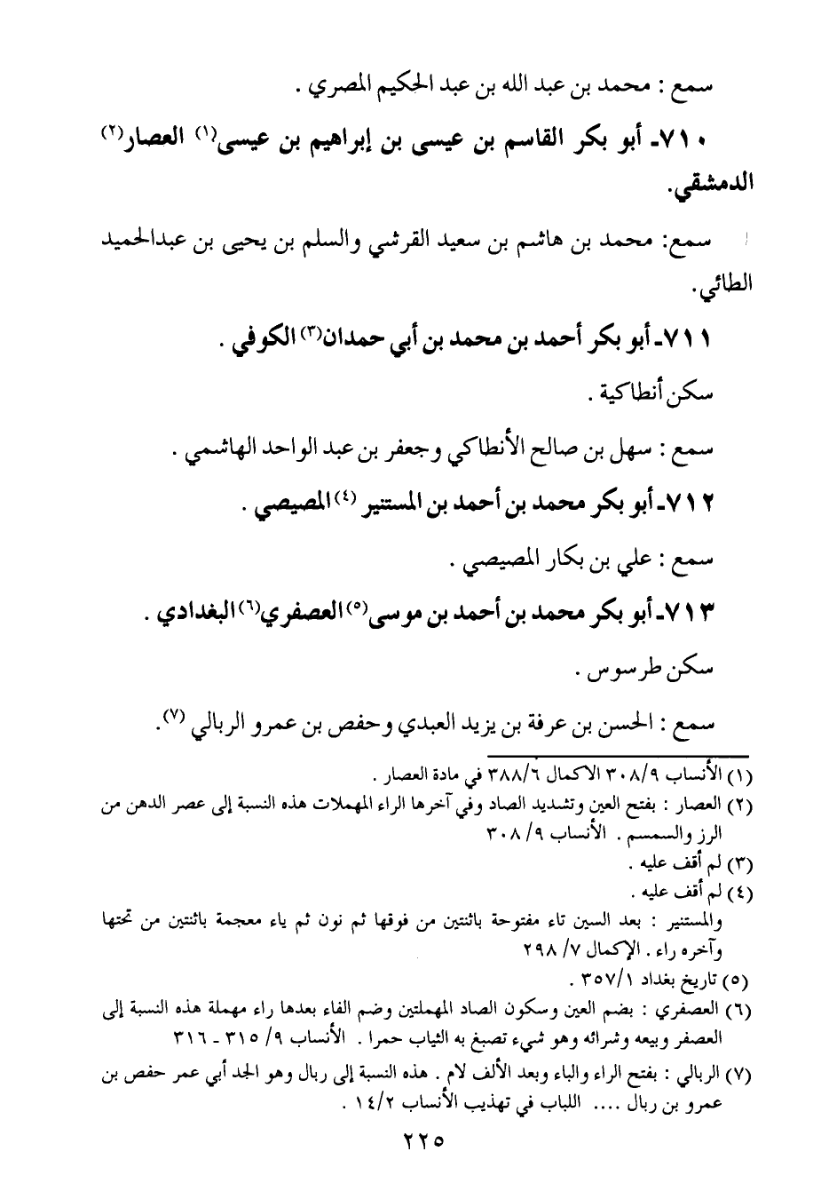 710- أبو بكر القاسم بن عيسى بن إبراهيم بن عيسى العصار الدمشقي.