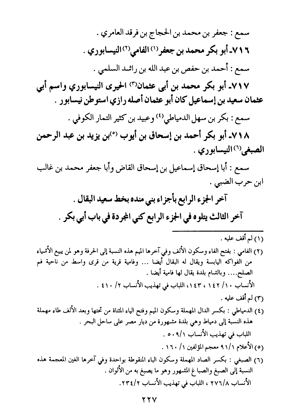 716- أبو بكر محمد بن جعفر الفامي النيسابوري.