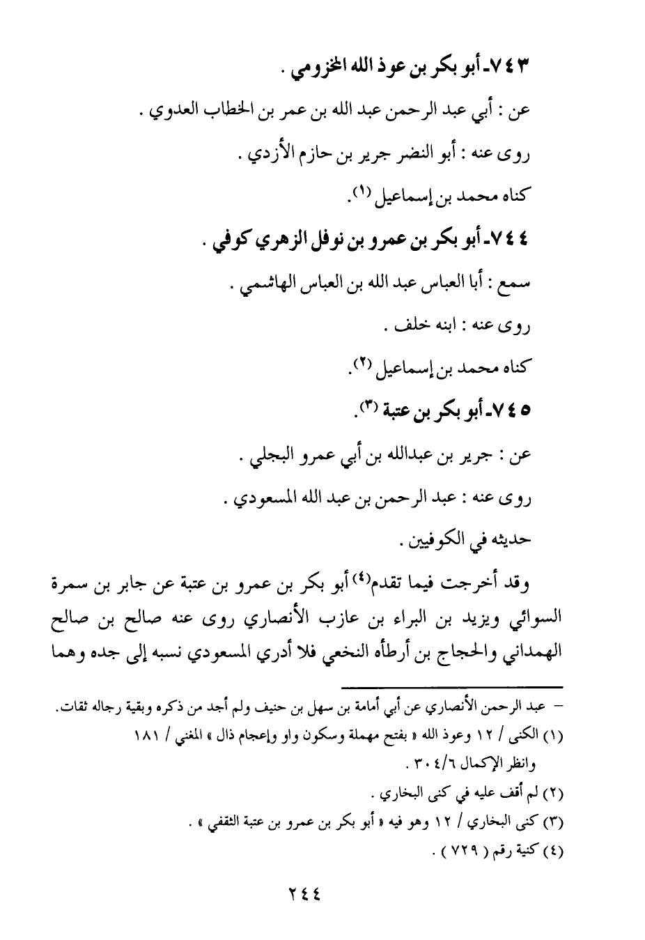 744- أبو بكر بن عَمْرو بن نوفل الزهري كوفي.