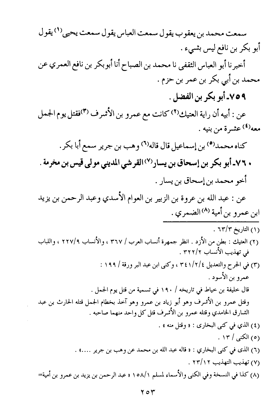 760- أبو بكر بن إسحاق بن يسار القرشي المديني مولى قيس بن مخرمة.